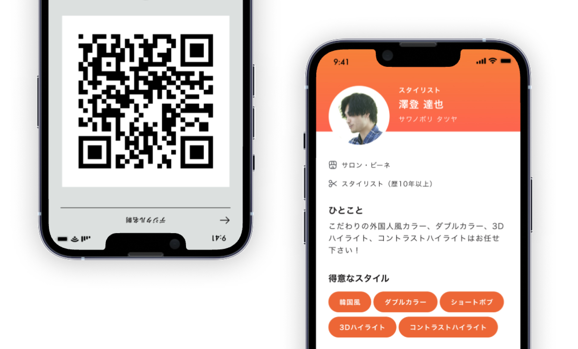 スマホをかざすだけで、お客様に手間をかけることなく、簡単に自己紹介ができます。