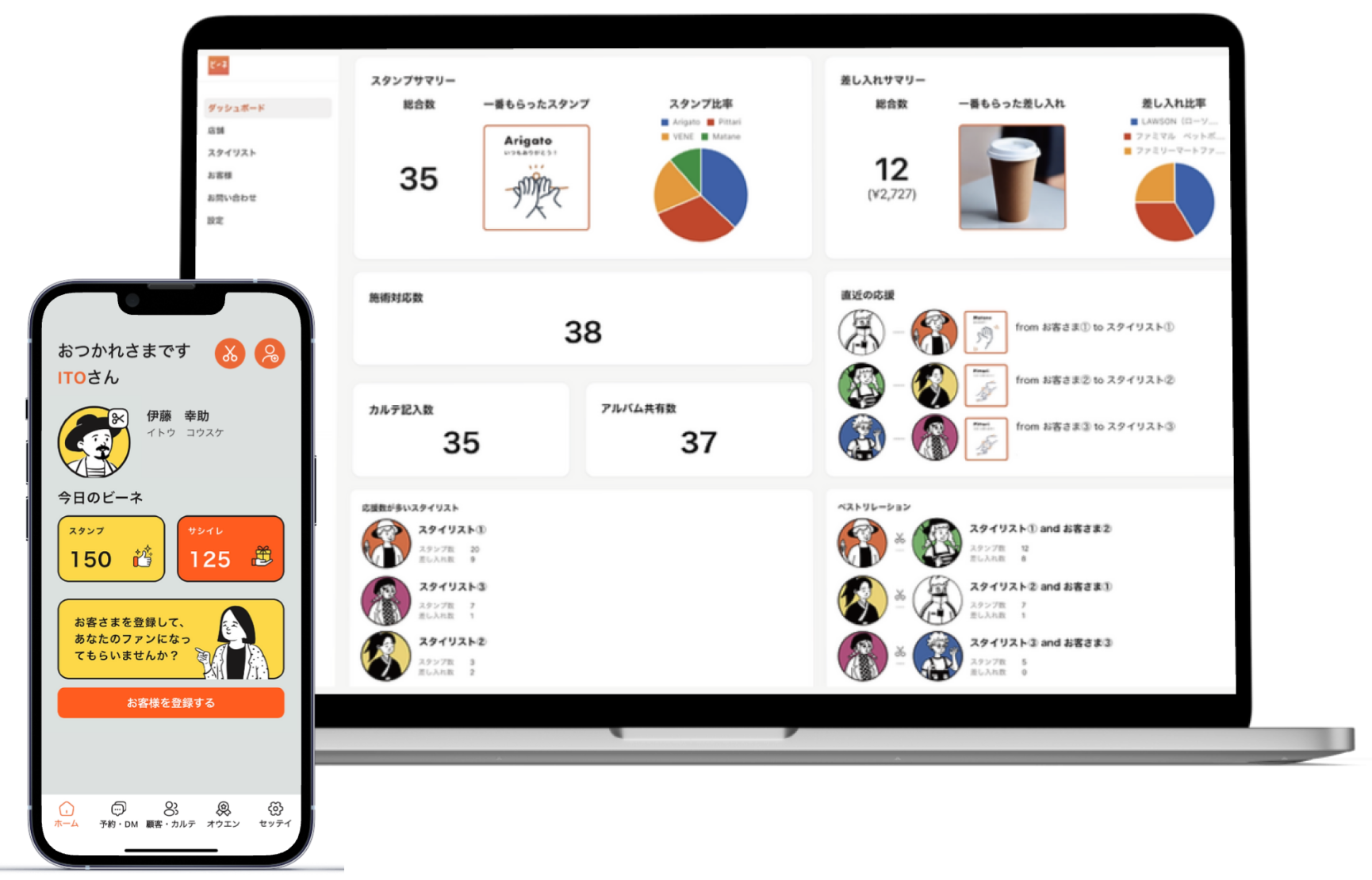お客さまの来店に応じて、ARIGATOスタンプがたまっていく。通えば通うほどお客さまにうれしい機能。